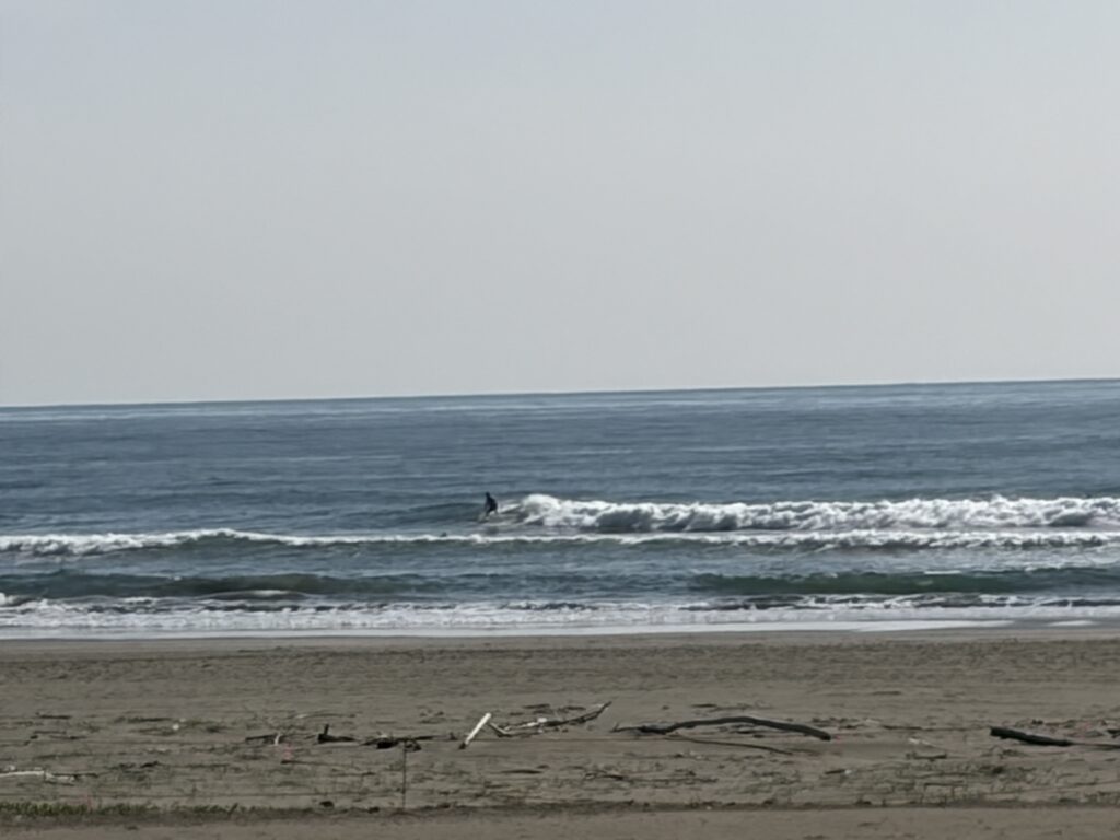 選んで何本か乗れたくらいでした。風も強まり、潮も少なくなり、コンディションが悪化した為、ポイントを変更します。